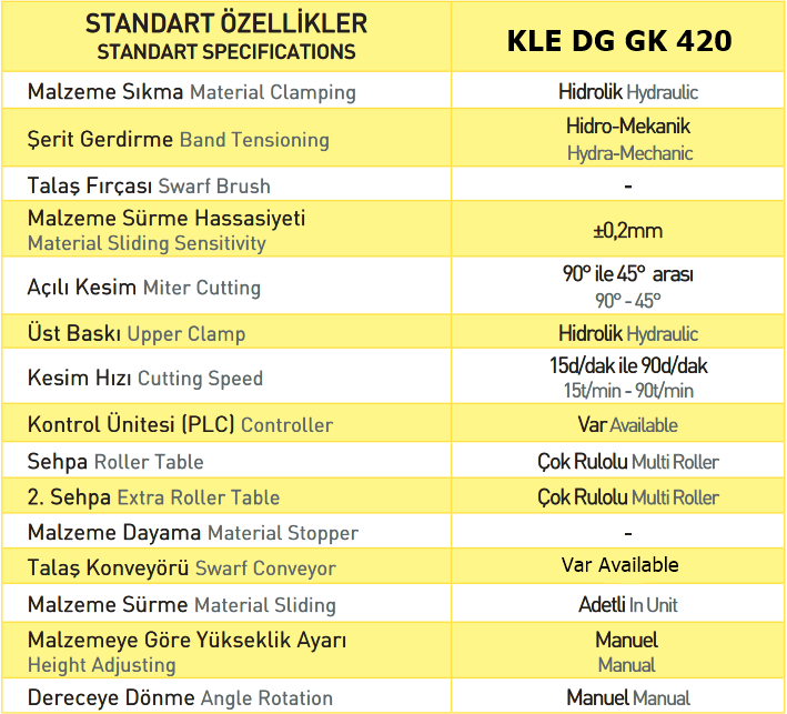 Lineer Kızaklı - Açılı Kesim KLE DG GK 420