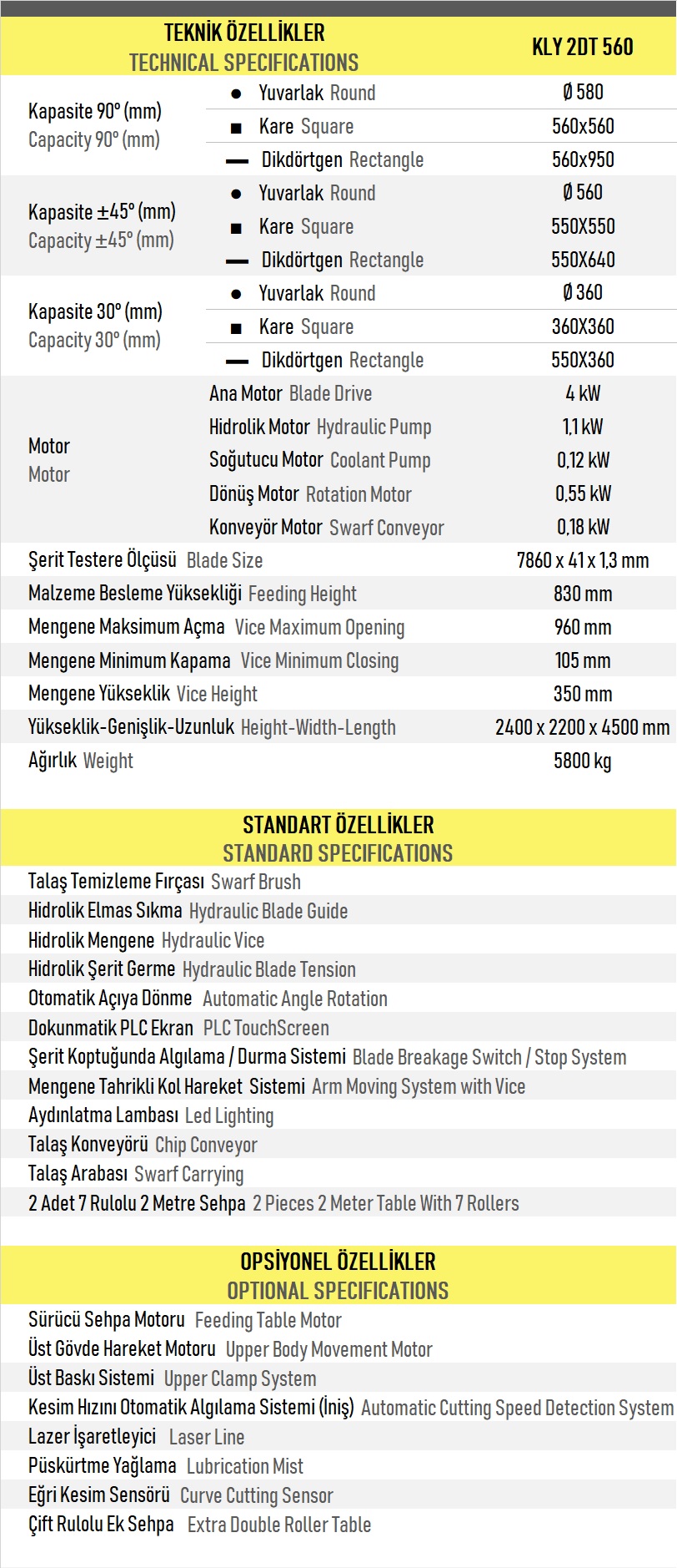 Lineer Kızaklı - Açılı Kesim KLY 2DT 560