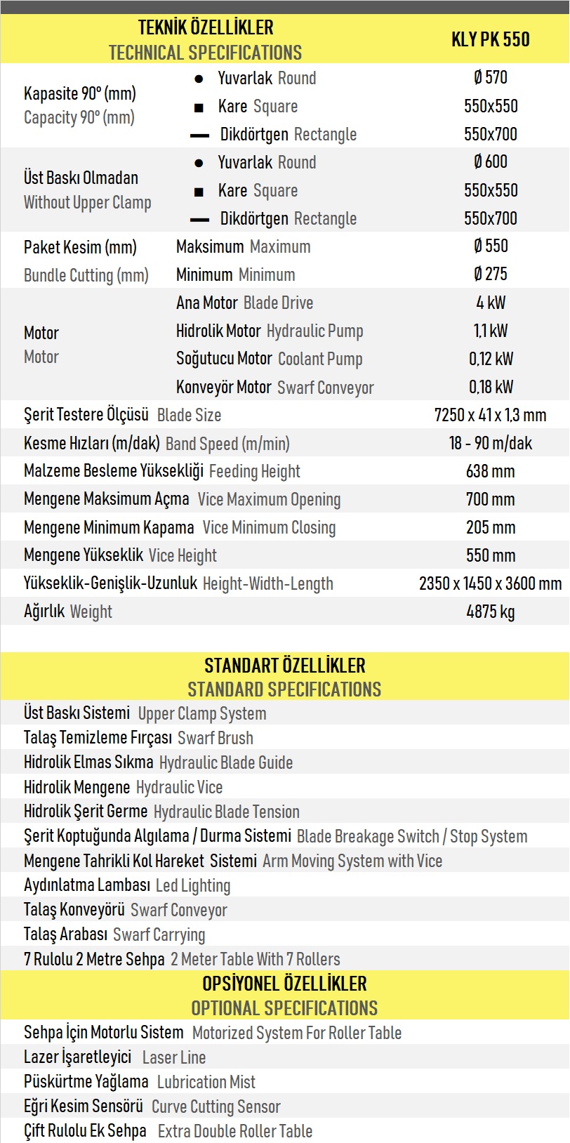 Lineer Kızaklı - Düz Kesim KLY PK 550