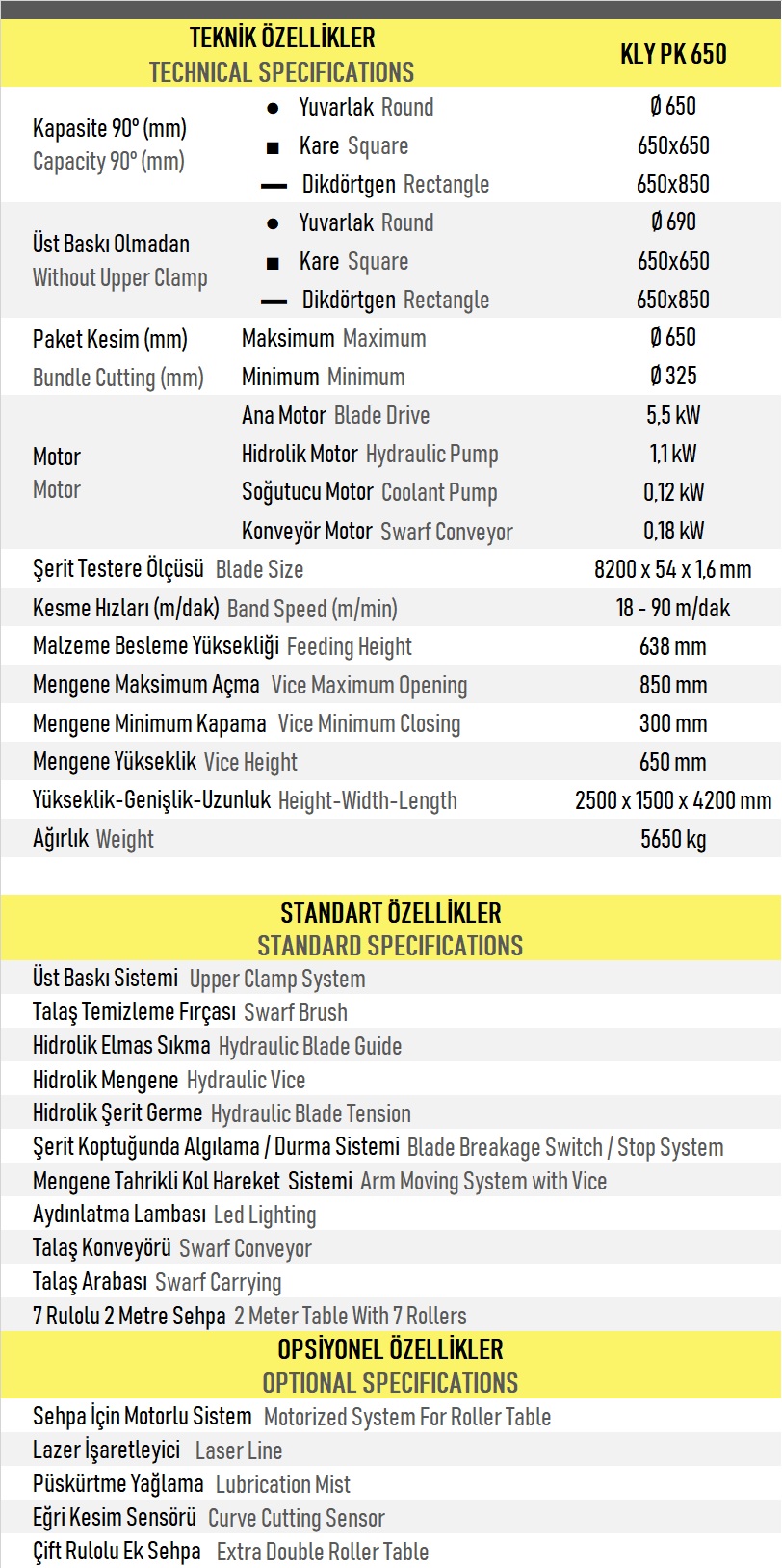 Lineer Kızaklı - Düz Kesim KLY PK 650